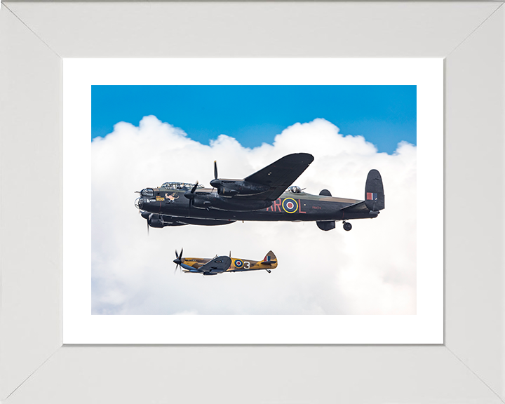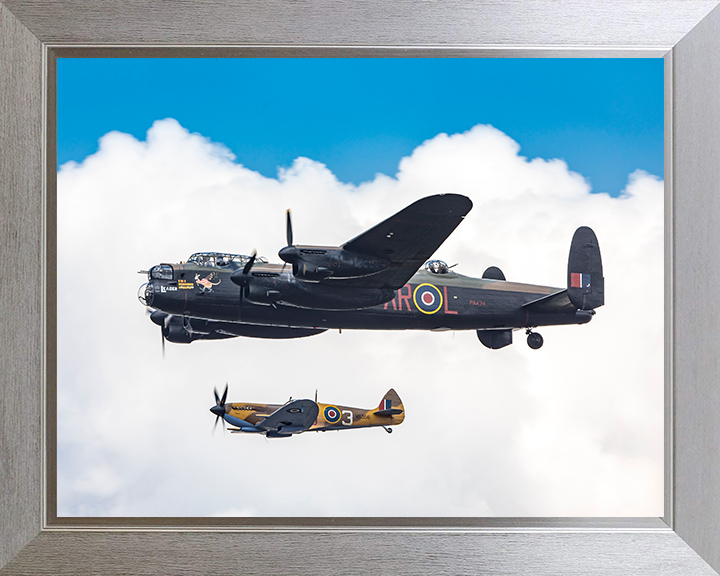 RAF Spitfire with Lancaster Bomber in Flight Photo Print - Royal Air Force Aircraft