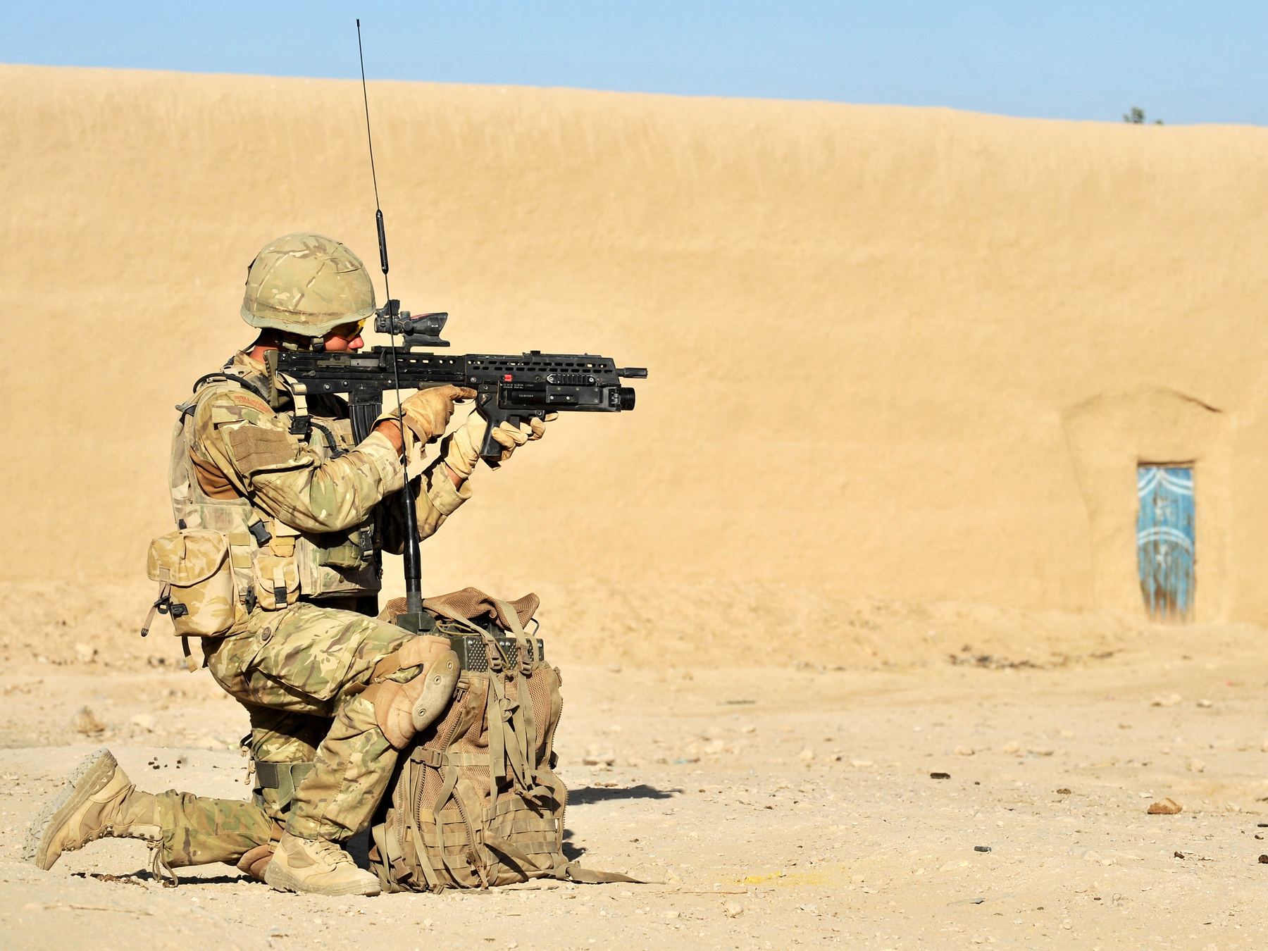 Royal Marines 40 Commando conducting a final push moving through the desert providing security and stability for the Afghan people within remote villages.