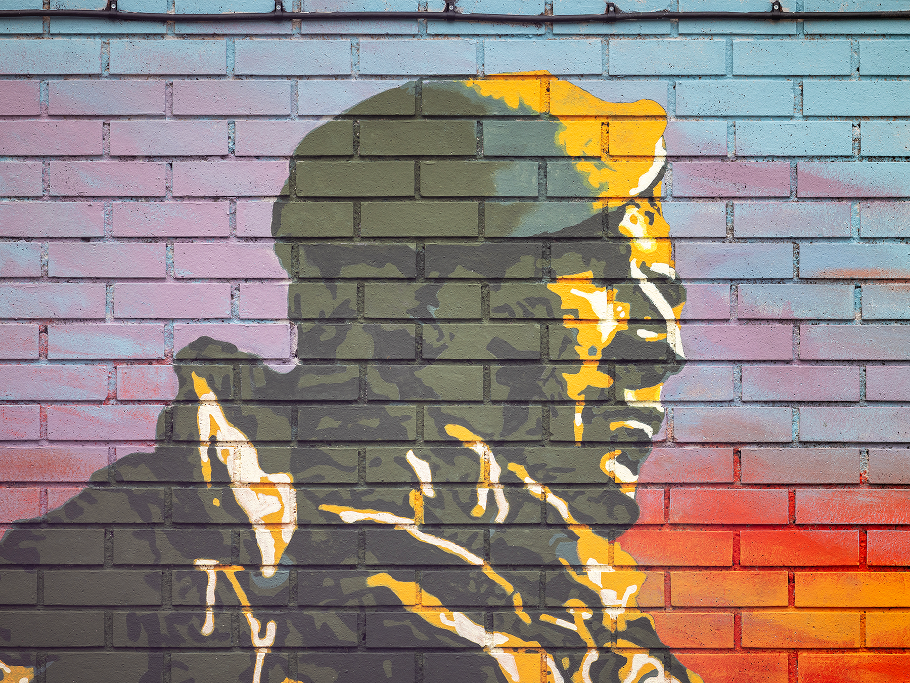 A Closeup of the large Mural depicting one of the most famous Royal Marine images of the 1982 Falklands Conflict that has been unveiled on a wall at the Commando Training Centre, Lympstone in Devon.