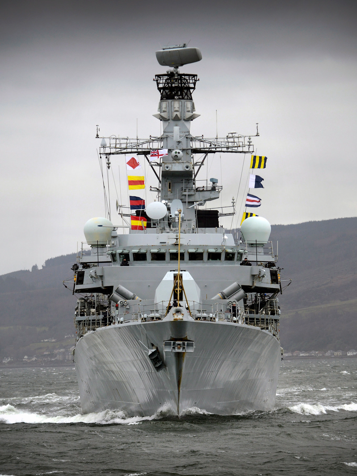 Royal Navy Type 23 Frigate HMS Argyll on the clyde en route to Glasgow for the first time in five years