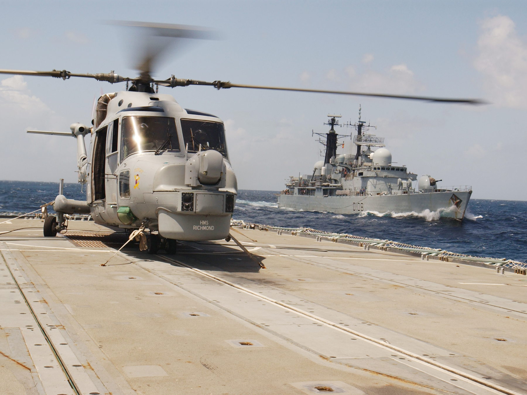 Portsmouth based Type 42 destroyer HMS Cardiffphotographed from the flight deck of Royal Navy Type 23 Frigate HMS Richmond