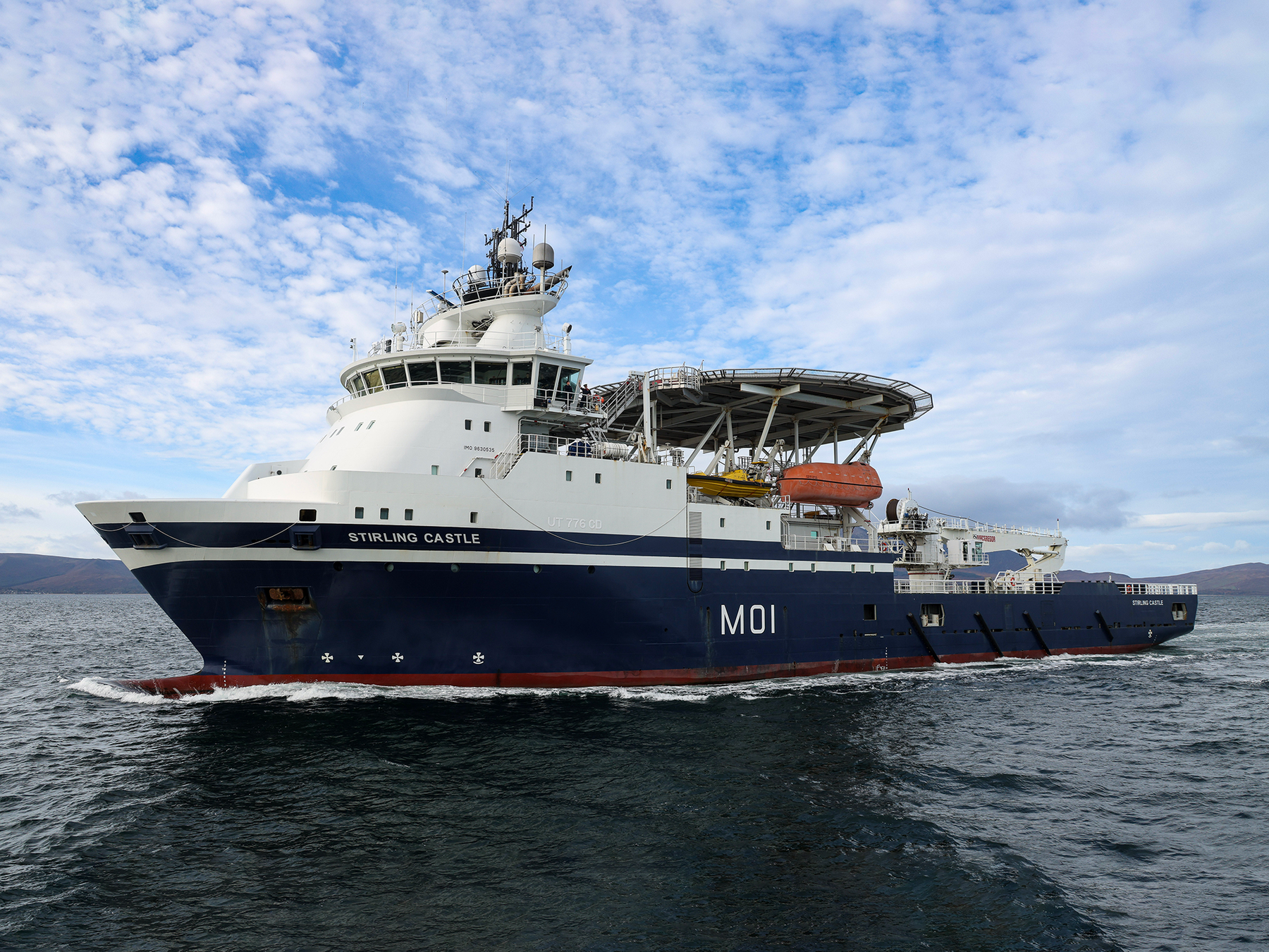 The Royal Navies latest ship mine countermeasures support vessel HMS Stirling Castle (M01) at sea in October 2025